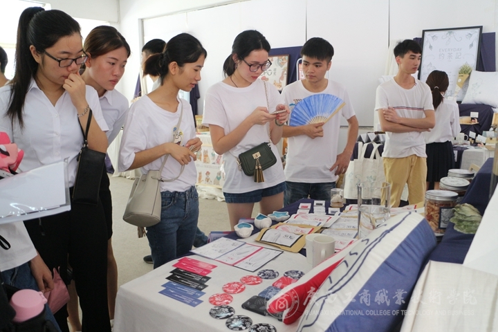 此次參加展演的同學(xué)們,不僅是要展演,還要借此推銷自己,去就業(yè)洽談會(huì)上也碰碰運(yùn)氣,說不定會(huì)謀得一份實(shí)習(xí)的好工作。而財(cái)信系畢業(yè)設(shè)計(jì)展上不少文創(chuàng)作品,在校慶日當(dāng)天也賣了不少好價(jià)錢。光顧他們的,不少是回來參加畢業(yè)典禮的學(xué)長(zhǎng)學(xué)姐,還有前來招聘的企業(yè)家,以及慕名而來的周邊市民。