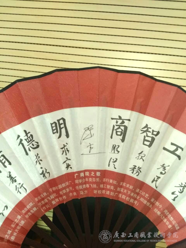 據(jù)了解,廣商院文化扇是母校贈(zèng)與每一位畢業(yè)生的禮物,上面凝聚了?;?、校風(fēng)、校訓(xùn)、校歌,其題字由學(xué)生書寫并遴選勝出,每年一換。