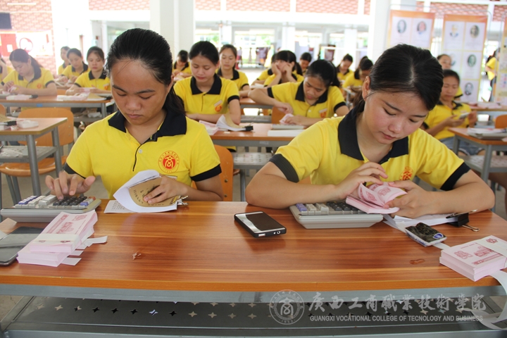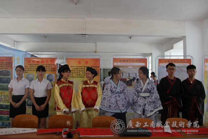 本次展演共有三個內(nèi)容,一:會計文化展示,會計系的學(xué)生穿著中華傳統(tǒng)漢服向大家介紹會計的起源和發(fā)展史,還介紹了國內(nèi)外貨幣;二:會計小技能展演點鈔,翻打傳票,會計系的同學(xué)低頭認真點鈔,速度手法技巧令人折服,三:會計沙盤操作展演,同學(xué)們結(jié)合自身所學(xué)的知識,為大家展示沙盤的魅力。同時,也設(shè)了體驗區(qū)讓大家體驗會計小技能的魅力。