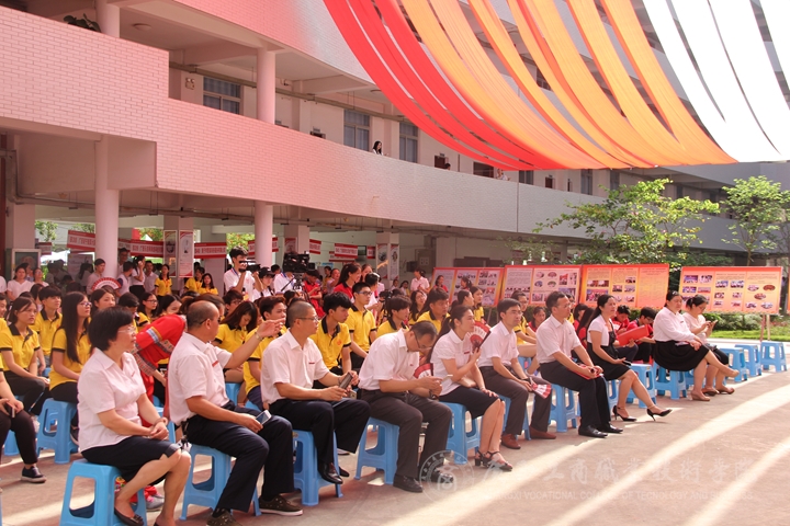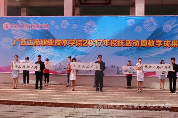 2017年6月24日上午,我院在校本部教學樓小舞臺舉行校慶日教學成果展演啟動儀式。黨委副書記、紀委書記蒙啟成、副院長李維出席本次活動,相關部門負責人和部分師生代表參加了本次活動?;顒佑舌嚭土己忘S子倩兩位同學擔任主持人。