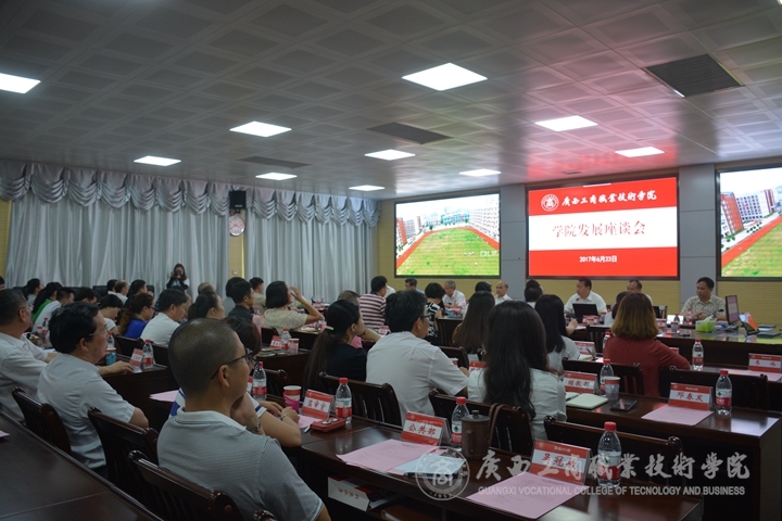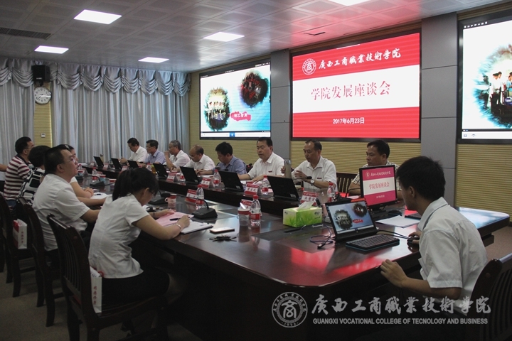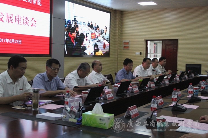 2017年6月23日下午,廣西工商職業(yè)技術(shù)學(xué)院舉辦“年代師生話發(fā)展”座談會(huì),邀請(qǐng)畢業(yè)30年、20年、10年,和今年畢業(yè)的四個(gè)年代的校友代表,以及入職30年、20年、10年,和今年入職四個(gè)年代入職教師代表,以 “年代生”、“年代師”的座談交流方式,去研討學(xué)院發(fā)展的路徑,探究學(xué)院發(fā)展的愿景。自治區(qū)糧食局人事處處長(zhǎng)周明耀,原學(xué)院黨委書記、副廳級(jí)調(diào)研員,現(xiàn)已退休的黃永蓬;原工貿(mào)、廣商院副院長(zhǎng),現(xiàn)任廣西水產(chǎn)畜牧學(xué)校校長(zhǎng)、黨委書記黃祖江;廣西水產(chǎn)畜牧學(xué)校黨委專職副書記、副校長(zhǎng)、副研究員關(guān)意寅;學(xué)院黨委書記覃武云、院長(zhǎng)陳杰、黨委副書記、紀(jì)委書記蒙啟成;副院長(zhǎng)李維出席會(huì)議;座談會(huì)由陳杰院長(zhǎng)主持。
