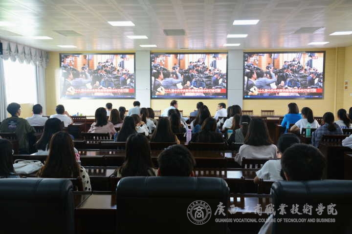 ? ? ? ? ?2017年10月25日上午,學(xué)院領(lǐng)導(dǎo)以及師生在報(bào)告廳集中共同收看了十九屆中共中央政治局常委同中外記者見面會(huì)直播。