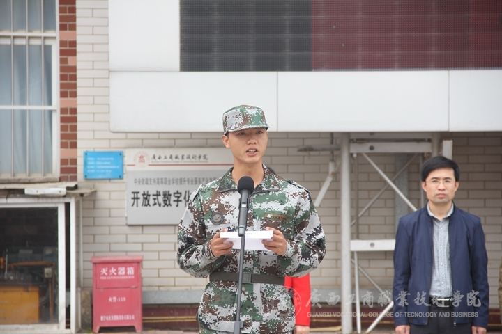 最后, 2017級學(xué)生代表工商1701班侯威同學(xué)在發(fā)言中表達(dá)了自己對軍訓(xùn)的認(rèn)識和向往,并代表全體新生向領(lǐng)導(dǎo)、教官和老師們作出承諾,一定會在軍訓(xùn)中嚴(yán)格聽從命令,刻苦訓(xùn)練軍事技能。