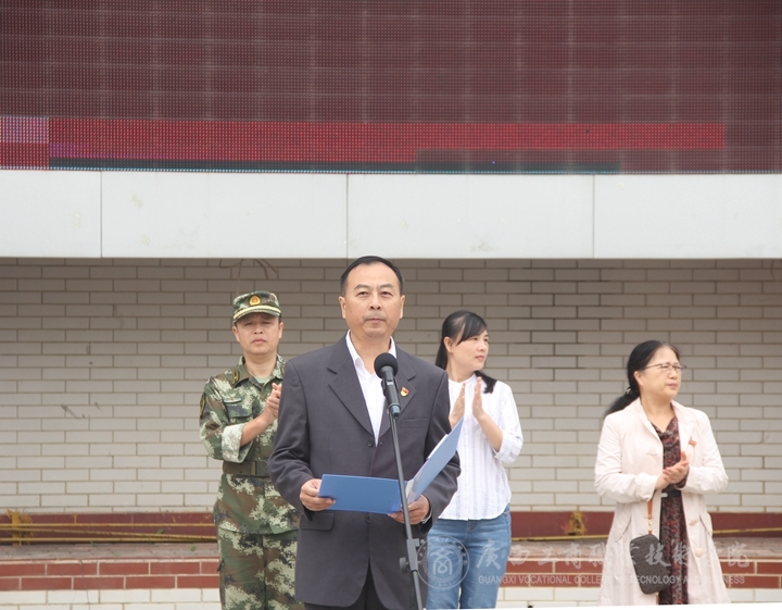 11月6日上午,我院2017級軍事訓(xùn)練動員大會在校本部LED大屏幕下召開,學(xué)院黨委副書記、紀(jì)委書記蒙啟成和武警廣西總隊直屬支隊副大隊長閉永勤出席會議,教務(wù)科研處處長闕勇平、后勤管理處副處長梁坤、各系主任、黨總支書記、學(xué)工副主任、2017級輔導(dǎo)員、班主任、系教學(xué)秘書和2017級全體新生參加本次動員大會。大會由學(xué)工部副部長廖顯圖主持。