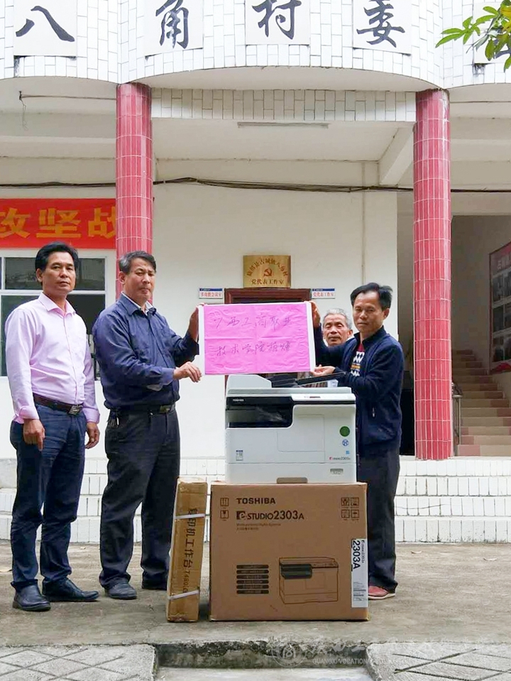 11月上旬,廣西工商職業(yè)技術(shù)學(xué)院將價(jià)值9萬(wàn)多元的多功能復(fù)印機(jī)、電腦、打印機(jī)、空調(diào)等一批辦公用品分別送至學(xué)院定點(diǎn)幫扶的貧困村陸川縣馬坡鎮(zhèn)靖西村、珊羅鎮(zhèn)四樂(lè)村、清湖鎮(zhèn)水亭村、清湖鎮(zhèn)那若村、古城鎮(zhèn)八角村、古城鎮(zhèn)良村村等6個(gè)貧困村,并組織人員完成了安裝工作。該批辦公用品由學(xué)院現(xiàn)代教育中心采購(gòu)。