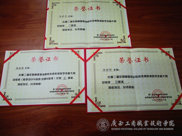 2017年11月23日至27日,第二屆全國高等職業(yè)院校體育教師教學(xué)技能大賽在江蘇省蘇州市舉行。在比賽中,我院朱武壽老師以80.42分獲得中年組體育教師技能大賽二等獎,梁麗郁老師以79.33分獲得青年組體育教師技能大賽三等獎、以85.36分獲得《教學(xué)設(shè)計與實踐 說課與微課》比賽三等獎。