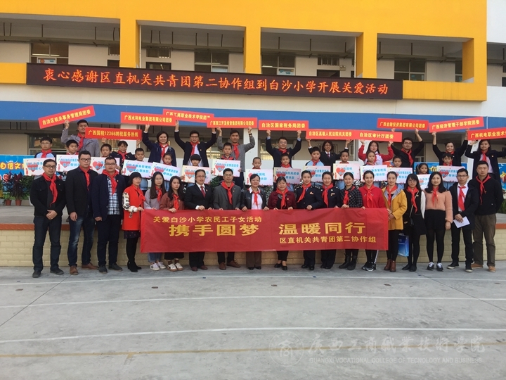 為繼續(xù)發(fā)揚(yáng)“奉獻(xiàn)、友愛、互助、進(jìn)步”的青年志愿者精神,2018年1月19日下午,我院蒙曉旺、歐少亮、仇志清老師參加區(qū)直機(jī)關(guān)共青團(tuán)第二協(xié)作組“攜手圓夢(mèng),溫暖同行”關(guān)愛白沙小學(xué)農(nóng)民工子女活動(dòng),以愛心關(guān)愛貧困農(nóng)民工子弟健康成長(zhǎng),快樂(lè)學(xué)習(xí)。