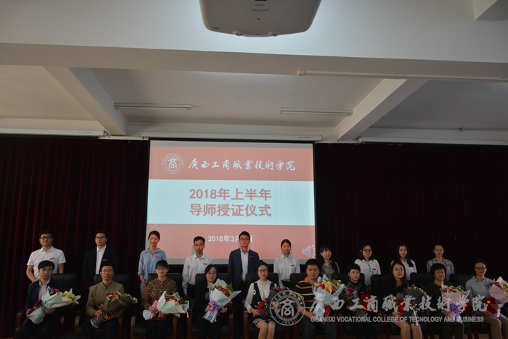? ? ? ? 接著,舉行了2018年上半年導(dǎo)師授證儀式。青年教師給導(dǎo)師獻(xiàn)花行鞠躬禮,教師表示感謝,并合影留念。