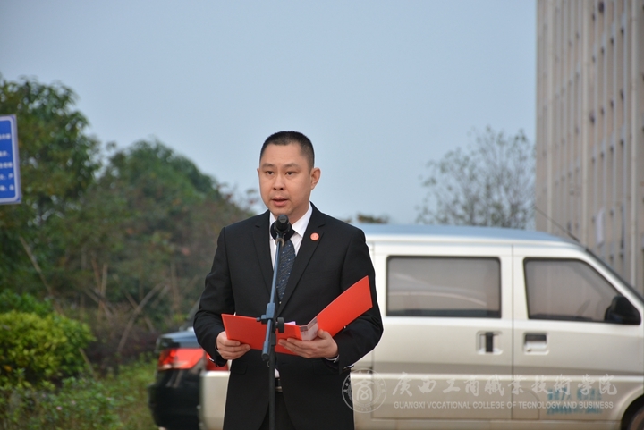 ??????? 升旗儀式由學(xué)院副院長(zhǎng)陳寧春主持,學(xué)院黨委書記覃武云在國(guó)旗下發(fā)表新學(xué)期開學(xué)講話。