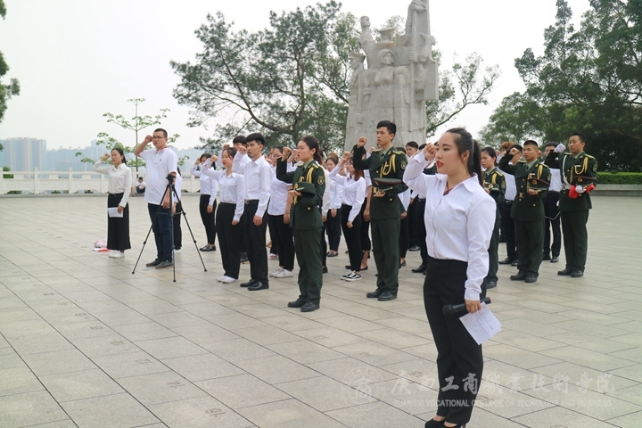 ??????? 隨后,同學(xué)們走過紅橋,來到百色起義紀(jì)念碑,并于此舉行莊重的祭奠儀式,向英勇抗戰(zhàn)的革命先烈們送上最崇高、最偉大的致敬,以緬懷先烈,銘記歷史。在紀(jì)念碑前,同學(xué)們重溫入團(tuán)誓詞,錚錚誓詞響徹云霄,句句初心永生不忘,院學(xué)生委員會(huì)主席羅小玲同學(xué)向全體同學(xué)們發(fā)出倡議,倡議同學(xué)們要以史為鑒,要學(xué)習(xí)革命先烈們頑強(qiáng)拼搏的精神,秉承革命先烈遺志,艱苦奮斗、自強(qiáng)不息,用實(shí)際行動(dòng)向革命先烈致敬。