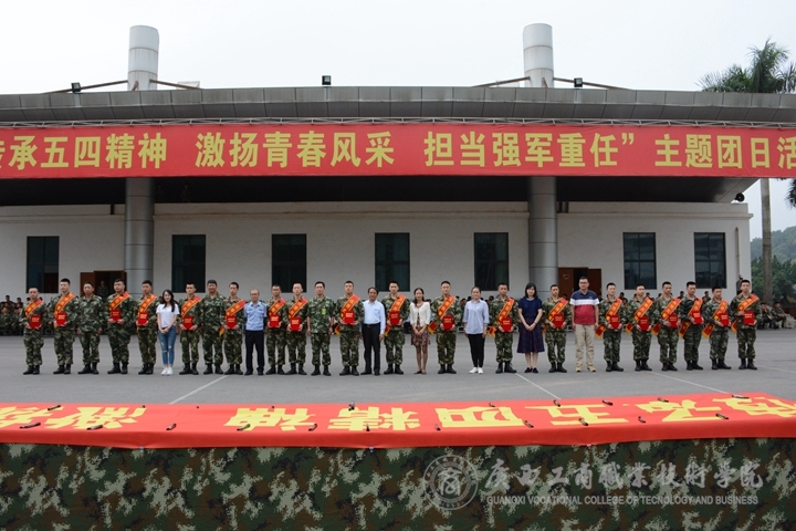 ??????? 2018年5月4日上午,我院師生團員代表到武警廣西總隊機動支隊二號訓練場參加2018年“傳承五四精神,激揚青春風采,擔當強軍重任”主題團日活動。機動支隊政治委員王丹、副支隊長李迎新、政治工作處主任蒙鴻鳴、保障處處長張永銳、我院黨委學生工作部部長助理黃旭艷、廣西警察學院學工處副處長覃偉剛、工會主席李中堅、江南小學黨支部書記黃學科、副校長許慧燕出席本次活動。同時參加本次活動的還有以上單位的相關工作人員、支隊院內(nèi)全體官兵、廣西警察學院團員團員代表,以及江南小學團員代表。