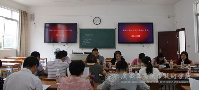 會(huì)議結(jié)束后,參會(huì)代表進(jìn)行了分組討論,由蔣百平主任、付光部長(zhǎng)、林芳主任、劉萬(wàn)英主任、林雯主任召集五個(gè)討論小組分別在教學(xué)樓2204、2205、2223、2224、2225教室討論關(guān)于我院章程的建設(shè)(征求意見(jiàn)稿)。分組討論中,代表們就《廣西工商職業(yè)技術(shù)學(xué)院章程》發(fā)表了自己的意見(jiàn)和看法。各方積極配合,全體共同努力探討結(jié)果。至下午17點(diǎn)10分,我院三屆三次教代會(huì)臨時(shí)會(huì)議圓滿結(jié)束。