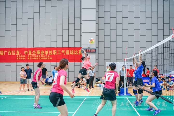 ??????? 由自治區(qū)直屬企事業(yè)工會主辦的第十六屆廣西區(qū)直、中直企事業(yè)單位職工氣排球比賽于6月2日在廣西體育中心開賽,比賽為期4天,學(xué)院男女氣排球隊出征比賽。區(qū)直中直企事業(yè)單位共有200多支代表隊3000多名運動員云集在一起,切磋技藝,互相學(xué)習(xí)和促進交流。