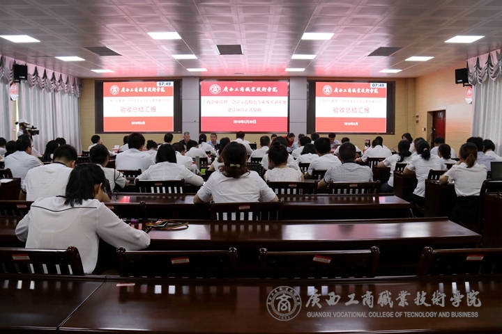 ??????? 2018年5月30日,廣西商業(yè)職業(yè)教育指導(dǎo)委員會驗(yàn)收專家組羅生芳教授、田力軍教授、李慶文教授、陳佩琪注冊會計師、劉立新董事長及驗(yàn)收工作人員黃恒拾、覃潔等一行7人,到我院開展2014-2015年度職業(yè)教育示范特色專業(yè)及實(shí)訓(xùn)基地建設(shè)立項(xiàng)項(xiàng)目驗(yàn)收工作,就我院工商企業(yè)管理、會計示范特色專業(yè)及實(shí)訓(xùn)基地建設(shè)項(xiàng)目進(jìn)行驗(yàn)收。驗(yàn)收會議在2119召開,學(xué)院院長陳杰、副院長李維出席會議,我院驗(yàn)收工作領(lǐng)導(dǎo)小組全體成員、各部門,各單位主要負(fù)責(zé)人,各系教學(xué)副主任(分管項(xiàng)目建設(shè))及工作人員,專業(yè)教研室正副主任、骨干老師,工商企業(yè)管理、會計項(xiàng)目匯報人,立項(xiàng)項(xiàng)目其他部門驗(yàn)收工作人員、教務(wù)科研處工作人員等參與了此次會議。