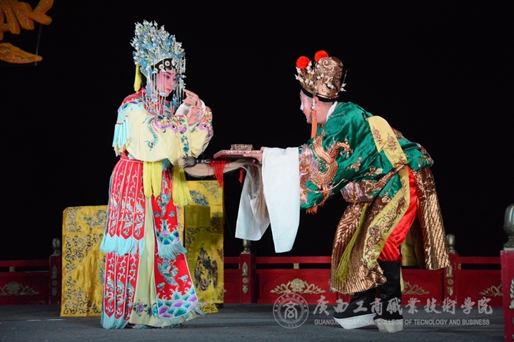 ? ? ? ? 為加強傳承和弘揚中華優(yōu)秀傳統(tǒng)文化,推進(jìn)高雅藝術(shù)進(jìn)校園、戲曲進(jìn)校園,抓好中華優(yōu)秀傳統(tǒng)文化藝術(shù)傳承。2018年6月12日晚,南寧市民族文化藝術(shù)研究院“戲曲進(jìn)校園”—南派粵劇折子戲?qū)鲈谖以葫i飛校區(qū)文體館二樓開演。我院師生現(xiàn)場欣賞了一場美輪美奐的演出。