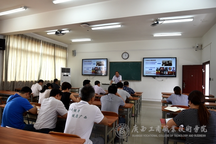 ? ? ? ? 李仕欽上課的題目是:“習(xí)近平新時代中國特色社會主義思想”,黨課主要內(nèi)容有:一、思想的時代背景;二、思想的主要內(nèi)容:用社會主義建成現(xiàn)代化中國;三、思想的歷史地位:開創(chuàng)馬克思主義中國化新境界,并指出了習(xí)近平新時代中國特色社會主義思想是黨和人民團(tuán)結(jié)奮斗的指導(dǎo)思想。