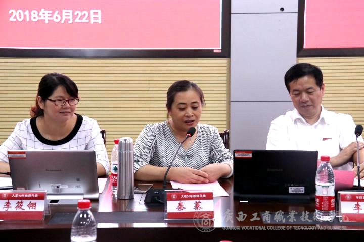 ? ? ? ? ?6月22日下午,廣西工商職業(yè)技術(shù)學(xué)院在鵬飛校區(qū)會(huì)議廳舉辦學(xué)院發(fā)展座談會(huì)。廣西工商職業(yè)技術(shù)學(xué)院黨委書記覃武云、院長陳杰、黨委副書記蒙啟成、副院長李仕欽、副院長李維、副院長陳寧春出席會(huì)議,學(xué)院各部門、各單位主要負(fù)責(zé)人、校友辦、各系系校友組全體人員、四個(gè)年代校友代表(畢業(yè)30年、20年、10年、今年)、 四個(gè)年代入職教師代表(入職 30 年、20 年、10 年、今年)參加會(huì)議。 座談會(huì)由院長陳杰主持。會(huì)上,陳杰介紹了參會(huì)人員,并對(duì)返校的畢業(yè)校友代表及教師代表的到來表示熱烈歡迎。緊接著,覃武云向大家簡要通報(bào)學(xué)院改革發(fā)展情況,主要講三方面情況。