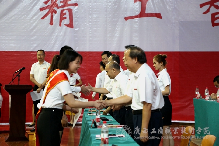 ??????? 2018年6月23日下午,廣西工商職業(yè)技術(shù)學(xué)院在鵬飛校區(qū)文體館二樓舉辦2018屆畢業(yè)典禮。出席畢業(yè)典禮的有學(xué)院領(lǐng)導(dǎo)黨委書記覃武云、院長陳杰、黨委副書記、紀(jì)委書記蒙啟成、副院長李仕欽、副院長李維、副院長陳寧春以及各部門負(fù)責(zé)人,參加畢業(yè)典禮的有畢業(yè)班的班主任、輔導(dǎo)員以及全體畢業(yè)班學(xué)生。畢業(yè)典禮由副院長陳寧春主持。