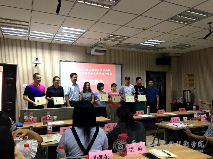 ??????? 理無專在,而學(xué)無止境也。本次培訓(xùn)班于7月1日開班,至7月5日結(jié)束,培訓(xùn)班教學(xué)內(nèi)容豐富,形式多樣,主要包括《團(tuán)隊(duì)建設(shè)與管理能力》、《信息化教學(xué)能力提升實(shí)操》、《國(guó)家自科、社科項(xiàng)目申報(bào)經(jīng)驗(yàn)分享》、《新時(shí)期教師師德師風(fēng)》、《現(xiàn)代教育管理前沿思想》、《現(xiàn)代學(xué)徒制》、《行動(dòng)導(dǎo)向的專業(yè)建設(shè)與課程開發(fā)》等專題講座,團(tuán)隊(duì)?wèi)敉馑刭|(zhì)拓展訓(xùn)練以及赴柳州職業(yè)技術(shù)學(xué)院開展的產(chǎn)教融合校際調(diào)研交流活動(dòng)和一次分組討論活動(dòng)。經(jīng)過5天緊張而有序的學(xué)習(xí),學(xué)員們收獲頗豐。