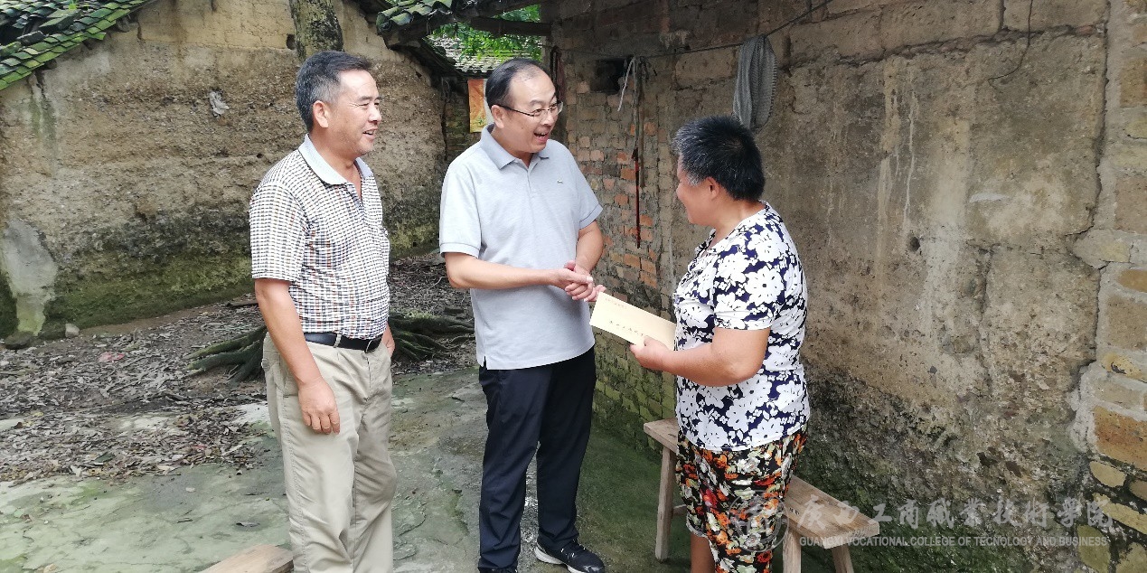 7月30日,學(xué)院黨委蒙啟成副書記率隊(duì)赴陸川縣珊羅鎮(zhèn)四樂村開展“一幫一扶·結(jié)對(duì)幫扶”活動(dòng),到貧困戶家中了解家庭經(jīng)濟(jì)狀況,同時(shí)帶去了我院師生對(duì)貧困戶的關(guān)懷。公共基礎(chǔ)部9位教師一同參與了結(jié)對(duì)幫扶活動(dòng)。