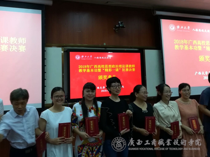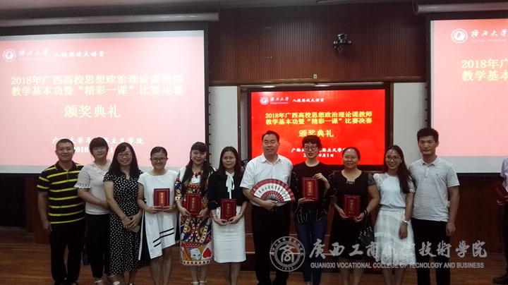 ? ? ? ? ?2018年 9月1日,由自治區(qū)高校工委、教育廳主辦,廣西大學(xué)馬克思主義學(xué)院承辦的2018年廣西高校思想政治理論課教師教學(xué)基本功暨“精彩一課”比賽決賽落下帷幕,我部林勇靈老師參賽,部門(mén)全體老師現(xiàn)場(chǎng)觀摩。