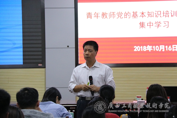 10月16日下午,學(xué)院于鵬飛校區(qū)視頻會議室召開青年教師黨的基本知識專題培訓(xùn)班(第二期)開班動員會暨專題講座。學(xué)院30歲以下(含30歲)黨員教師和35歲以下(含 35 歲)非黨員教師等學(xué)員參加。專題講座邀請中共廣西區(qū)委黨校、廣西行政學(xué)院公共管理教研部熊水龍副教授主講。