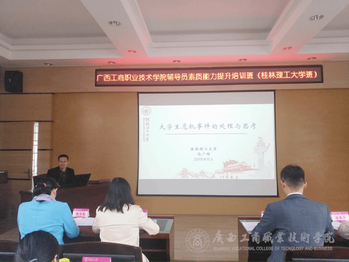 上午九點(diǎn),桂林理工大學(xué)學(xué)工部副部長馮廣輝作關(guān)于“危機(jī)事件處理”的專題講座。馮部長深入淺出地講解危機(jī)事件的概念、類型及特征,期間穿插了大量生動詳實(shí)的危機(jī)事件典型案例,通過案例分析,得出一套明晰的、完整的、可操作性強(qiáng)的危機(jī)事件處理方法與策略,并且針對危機(jī)事件處理,給輔導(dǎo)員提了四點(diǎn)建議,附送了三個“錦囊妙計”。學(xué)員紛紛表示聽了馮部長的講座,獲益匪淺,既增長了見識,又打開了思路,對今后處理危機(jī)事件更有信心了。
