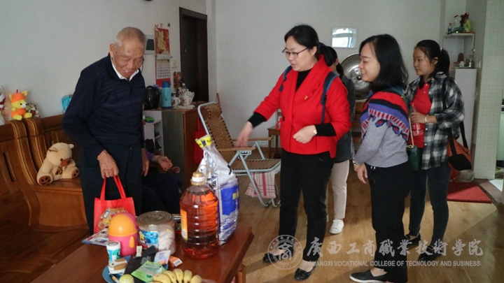 儀式結束后,在羅文社區(qū)的人員帶領下,經(jīng)管系黨總支進入羅文社區(qū)走訪了70歲以上老黨員,分別走訪了5位老黨員。每到一戶,教師黨員與老黨員親切交談,詳細詢問了老黨員身體近況和生活狀況,囑咐他們要注意休息,保重身體。有86歲的老黨員,更有93歲的老黨員,一句句問候、一聲聲叮囑,把深情的問候和祝福送到了老黨員們的心坎上。隨后,還給他們送上大米、花生油、 面條等慰問品,寄托著黨對老黨員的一份惦念,一份關心。老黨員們熱淚盈眶,感激之情溢于言表。