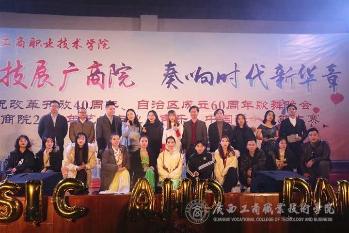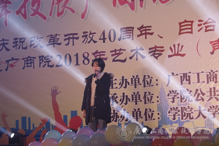 近日,我院在鵬飛校區(qū)文體館二樓舉辦了 “歌舞技展廣商院,奏響時(shí)代新華章”慶祝改革開(kāi)放40周年、自治區(qū)成立60周年歌舞晚會(huì)暨廣商院2018年藝術(shù)專業(yè)技能大賽,本次比賽由學(xué)院公共基礎(chǔ)部承辦,學(xué)院大學(xué)生藝術(shù)團(tuán)協(xié)辦。比賽邀請(qǐng)了廣西大學(xué)田昀艷副教授、廣西藝術(shù)學(xué)院白玲老師和胡郢老師、中國(guó)好聲音廣西賽區(qū)評(píng)委韋艷艷老師、廣西城市職業(yè)學(xué)院客座教授呂榮林老師擔(dān)任評(píng)委,學(xué)院部分教師代表、學(xué)生代表也觀看了本次比賽。