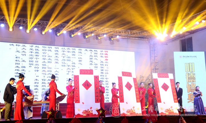 學(xué)院于2018年12月27日和12月28日分別在中堯校區(qū)風(fēng)雨球場(chǎng)舞臺(tái)和鵬飛校區(qū)文體館舉辦了以“逐夢(mèng)新時(shí)代 奮斗新征程”——舉辦2019年迎新晚會(huì)。學(xué)院黨委書記覃武云、院長(zhǎng)陳杰、學(xué)院黨委副書記、紀(jì)委書記蒙啟成、學(xué)院副院長(zhǎng)李維、學(xué)院副院長(zhǎng)陳寧春出席,各部門、各單位主要負(fù)責(zé)人;各系學(xué)工副主任、團(tuán)總支書記、全體輔導(dǎo)員;各部門、各單位人員;2017級(jí)、2018級(jí)學(xué)生代表觀看了晚會(huì)。