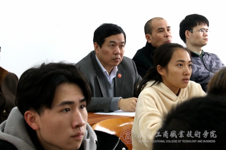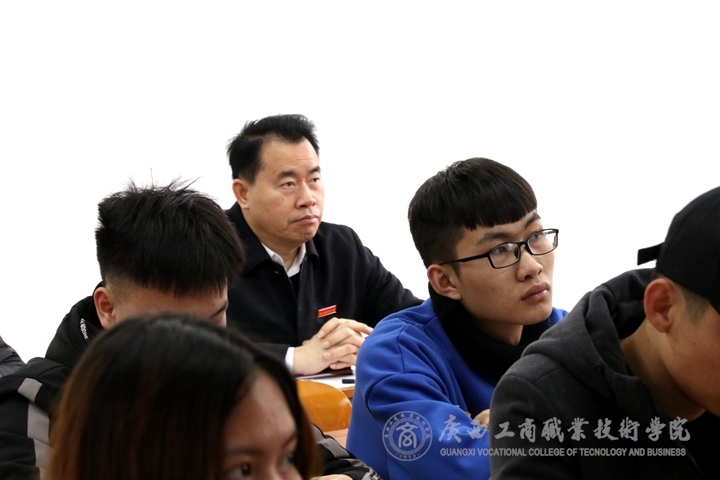 ????????與此同時,其他學(xué)院領(lǐng)導(dǎo)也深入到各系部課堂,隨堂聽課。其中,蒙啟成率教務(wù)科研處、思政部相關(guān)負責(zé)人一行,聽取了宋振泫老師的《毛澤東思想和中國特色社會主義理論體系概論》課。李仕欽率教務(wù)科研處、財信系相關(guān)負責(zé)人聽取莫德成老師的《廣告創(chuàng)意設(shè)計》課程,李維率教務(wù)科研處、公共部相關(guān)負責(zé)人聽取了公共部黃露露、韋育芳兩位老師的《英語》課程,在中堯校區(qū),陳寧春則率財信系相關(guān)負責(zé)人和教務(wù)處工作人員隨堂聽取了財信系老師朱明秀老師的《圖像處理》課程。