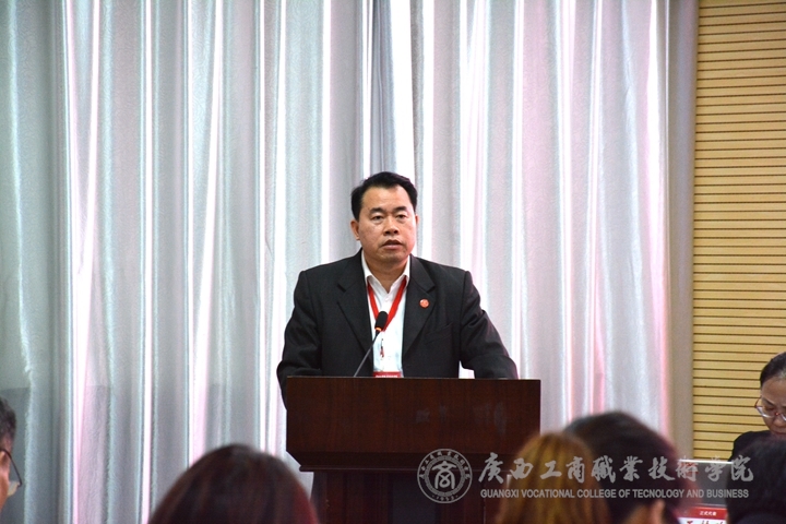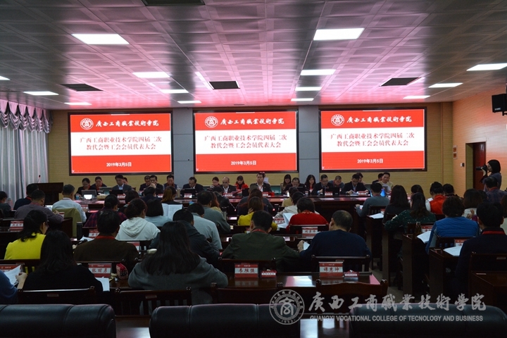 ???????? 2019年3月5日下午,我院在鵬飛校區(qū)報(bào)告廳召開(kāi)四屆二次教代會(huì)暨工會(huì)會(huì)員代表大會(huì)。學(xué)院黨委書(shū)記覃武云、院長(zhǎng)陳杰、黨委副書(shū)記、紀(jì)委書(shū)記蒙啟成、副院長(zhǎng)李仕欽、副院長(zhǎng)李維、副院長(zhǎng)陳寧春及正式代表70人、列席代表11人、特邀代表2人參加本次會(huì)議。