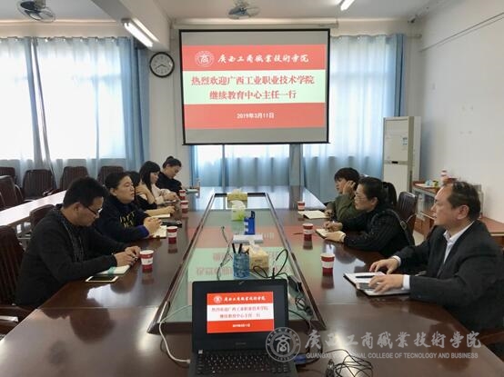 ? ? ? ? 2019年3月11日,廣西工業(yè)職業(yè)技術(shù)學(xué)院繼續(xù)教育中心主任張文清一行3人前來我院進(jìn)行業(yè)務(wù)交流。學(xué)院繼續(xù)教育部主任譚波、副主任段小斌及繼續(xù)教育部相關(guān)人員出席交流座談會(huì)。