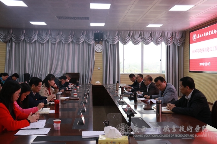 ? ? ? ? 2019年3月13日下午,我院于鵬飛校區(qū)視頻會(huì)議室召開(kāi)2019年黨的建設(shè)工作會(huì)議。學(xué)院領(lǐng)導(dǎo)、全體中層黨員領(lǐng)導(dǎo)干部、各黨總支、直屬黨支部書記、委員、各教師黨支部、學(xué)生黨支部書記、委員、黨委工作部門全體人員、全體輔導(dǎo)員參加會(huì)議,中層非黨員領(lǐng)導(dǎo)干部受邀列席會(huì)議。學(xué)院黨委書記覃武云在會(huì)上做2019年學(xué)院黨的建設(shè)工作報(bào)告。院長(zhǎng)陳杰主持會(huì)議。