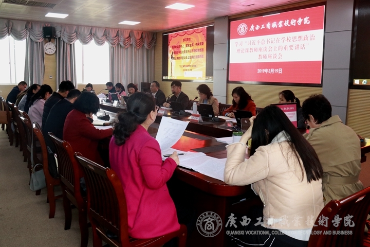 ???????會上,參會人員觀看了習(xí)近平總書記在學(xué)校思想政治理論課教師座談會上發(fā)表重要講話的新聞視頻。思政部的劉萬英、孫德江、王桂玲、覃田等7位教師以及相關(guān)職能部門代表先后做了發(fā)言。大家圍繞習(xí)近平總書記的重要講話精神,結(jié)合我院思想政治理論課程建設(shè)的具體情況,就思想政治理論課面臨的機(jī)遇與壓力、目標(biāo)與內(nèi)容、教師隊伍建設(shè)、課程改革創(chuàng)新等問題作了交流發(fā)言。大家都深感責(zé)任重大,也從中找到了今后的努力方向。?