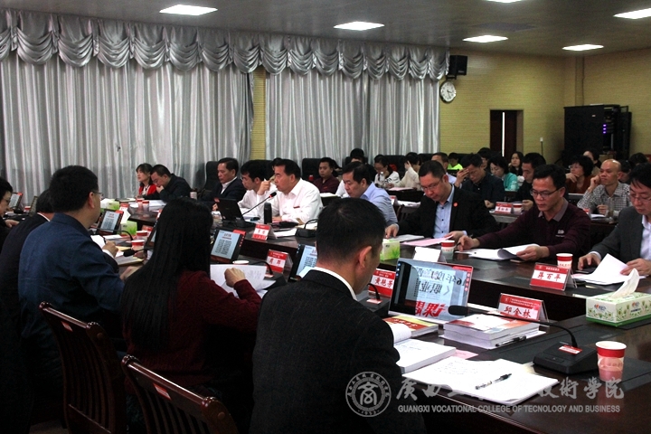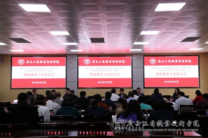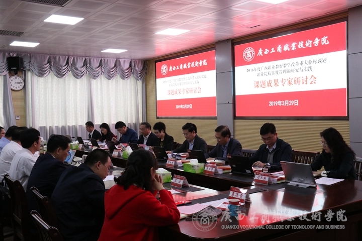 ??????? 2019的3月29日下午,由我院院長陳杰教授主持的,2016年廣西職教重大招標(biāo)課題《職業(yè)院校常規(guī)管理應(yīng)用研究與實(shí)踐》成果專家研討會(huì)在我院鵬飛校區(qū)視頻會(huì)議室舉行。會(huì)議就課題主要成果的2部著作《治校年輪》《辦學(xué)方略》 進(jìn)行專題研討和學(xué)術(shù)交流。