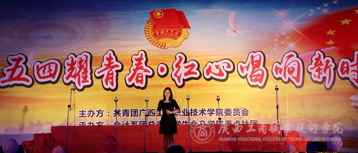 ? ? ? ? 為紀(jì)念五四運(yùn)動(dòng) 100 周年,進(jìn)一步傳承弘揚(yáng)“愛國、進(jìn)步、民主、科學(xué)”的五四精神,4月12日晚19點(diǎn),我院于鵬飛校區(qū)文體館二樓舉辦了主題為“百年五四耀青春·紅心唱響新時(shí)代”五四歌詠比賽的決賽。參賽對(duì)象為我院17級(jí)、18級(jí)從初賽進(jìn)入決賽的24個(gè)班級(jí)。本場(chǎng)晚會(huì)由何林與梁言騰主持。廣西機(jī)電職業(yè)技術(shù)學(xué)院團(tuán)委書記吳少強(qiáng)、廣西電力職業(yè)技術(shù)學(xué)院團(tuán)委副書記章婷、廣西建設(shè)職業(yè)技術(shù)學(xué)院團(tuán)委副書記黃秀薇、廣西藝術(shù)學(xué)院團(tuán)委社會(huì)實(shí)踐部副部長黃金、廣西農(nóng)業(yè)職業(yè)技術(shù)學(xué)院團(tuán)委張思儂老師擔(dān)任本場(chǎng)比賽的評(píng)委,學(xué)院領(lǐng)導(dǎo)、各系領(lǐng)導(dǎo)以及部分輔導(dǎo)員和學(xué)生代表等觀看比賽。