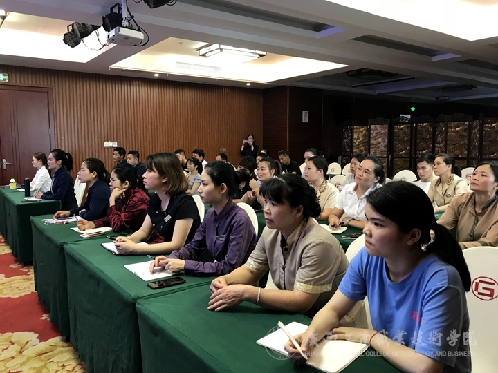 ? ? ? ? 2019年4月10日下午,我院繼續(xù)教育部為擴大社會服務(wù),提升為社會服務(wù)能力,應(yīng)格萊美大酒店邀請,特派經(jīng)管系酒店管理專業(yè)帶頭人莫小芳老師到格萊美大酒店,對酒店80余名員工進行酒店基礎(chǔ)禮儀培訓(xùn)。講座由格萊美大酒店葉美璟經(jīng)理主持,莫小芳老師主要就儀容禮儀、儀表禮儀、儀態(tài)禮儀、問候禮儀、名片禮儀、介紹禮儀、電話禮儀與技巧等方面的知識進行了全面系統(tǒng)的培訓(xùn)。