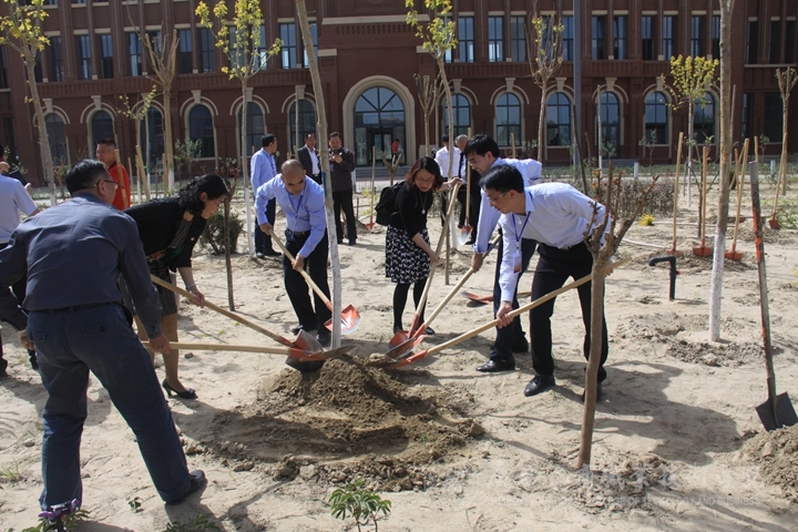 ? ? ? ? 會(huì)后,學(xué)院黨委書記覃武云與和田地委委員、行署副專員、地委教育工委副書記張建、地區(qū)教育局領(lǐng)導(dǎo)等同志,一同來到和田職業(yè)技術(shù)學(xué)院教學(xué)樓前共同植樹留念。