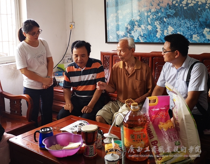 ? ? ? ? 為貫徹落實(shí)《中共廣西工商職業(yè)技術(shù)學(xué)院委員會(huì)關(guān)于印發(fā)< 中共廣西工商職業(yè)技術(shù)學(xué)院委員會(huì)慶祝建黨98周年系列活動(dòng)工作方案>的通知》(廣商院黨〔2019〕9號(hào))文件精神,繼續(xù)教育部黨支部抓好在職黨員到社區(qū)為群眾服務(wù)工作,持續(xù)開展黨內(nèi)關(guān)愛幫扶,深入聯(lián)系社區(qū)開展“雙報(bào)到”服務(wù)活動(dòng)。在“七一”前夕,為關(guān)懷社區(qū)生活困難的老黨員,繼續(xù)教育部黨支部與永和社區(qū)黨總支,帶著黨和政府的關(guān)懷與溫暖,到困難老黨員蘇其中、黃沛云同志家進(jìn)行走訪慰問(wèn)活動(dòng),以實(shí)際行動(dòng)傳遞濃濃愛心。
