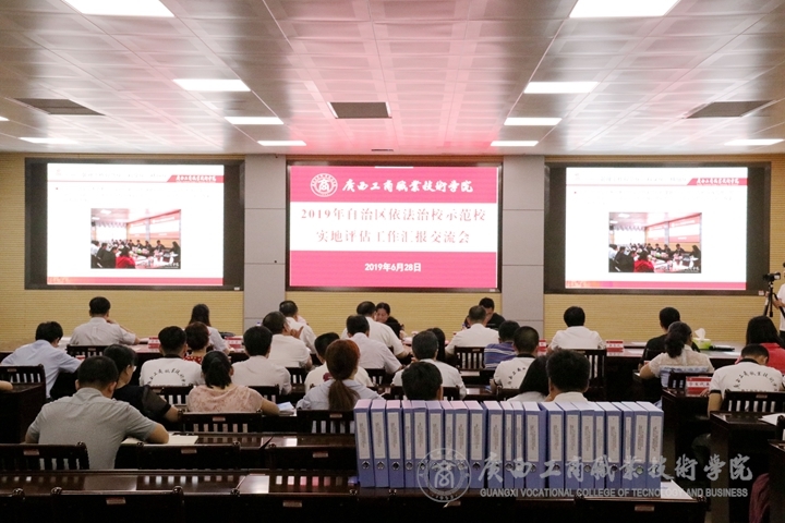 ? ? ? ? 當(dāng)日上午9點(diǎn),學(xué)院2019年自治區(qū)依法治校示范校實(shí)地評(píng)估工作匯報(bào)交流會(huì)在鵬飛校區(qū)視頻會(huì)議室舉行。評(píng)估工作專家組組長(zhǎng)蔣慧書記、桂林電子科技大學(xué)黨委統(tǒng)戰(zhàn)部常務(wù)副部長(zhǎng)楊青山、廣西大學(xué)教育督導(dǎo)團(tuán)團(tuán)長(zhǎng)蘇一丹、我院院長(zhǎng)李維,黨委副書記、紀(jì)委書記蒙啟成,學(xué)院副院長(zhǎng)、黨委委員陳寧春出席了本次評(píng)估工作座談會(huì)。學(xué)院各部門、各單位主要負(fù)責(zé)人,各系主任老師,各系學(xué)生代表參加會(huì)議。
