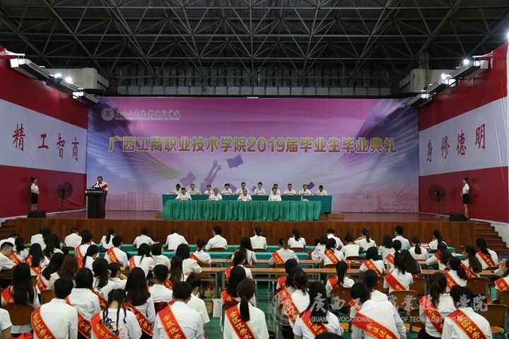 ??????? 6月29日下午,我院于鵬飛校區(qū)文體館二樓舉辦2019屆畢業(yè)典禮。學(xué)院黨委書記覃武云、院長李維、黨委副書記、紀(jì)委書記蒙啟成、副院長李仕欽、副院長陳寧春出席,各部門、各單位負(fù)責(zé)人、各系全體領(lǐng)導(dǎo)、畢業(yè)班輔導(dǎo)員以及全體16級(jí)畢業(yè)班學(xué)生參加本次畢業(yè)典禮。本次畢業(yè)典禮由副院長陳寧春主持。
