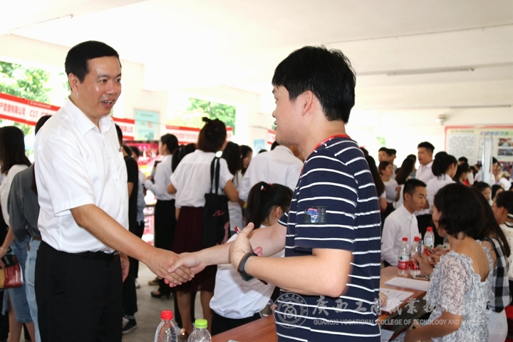? ? ? ? 為更好拓寬我院畢業(yè)生就業(yè)渠道,積極向企業(yè)用人單位提供應(yīng)用型人才,我院于6月29日上午在鵬飛校區(qū)教學(xué)樓架空層舉辦2019年畢業(yè)生就業(yè)洽談會(huì)暨頂崗實(shí)習(xí)企業(yè)推介會(huì),提供了眾多攤位,供企業(yè)展開人才招聘工作。學(xué)院領(lǐng)導(dǎo)對(duì)本次活動(dòng)高度重視,黨委書記覃武云、院長(zhǎng)李維、黨委副書記蒙啟成、副院長(zhǎng)陳寧春到洽談會(huì)現(xiàn)場(chǎng)指導(dǎo)工作,細(xì)心詢問招聘企業(yè)的相關(guān)訴求和招聘情況。