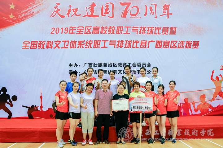 ? ? ? ? 自治區(qū)總工會教育工會舉辦2019年全區(qū)高校教職工氣排球比賽暨全國教科文衛(wèi)體系統(tǒng)職工氣排球比賽廣西賽區(qū)選拔賽,于2019年6月30日-7月2日開打。學院工會高度重視,精心組織,克服困難,選調(diào)最佳陣容,派出甲(黨政工隊)、乙(男隊)、丙(女隊)三隊,女隊喜獲高職院校第一名、2019年全區(qū)高校教職工氣排球比賽暨全國教科文衛(wèi)體系統(tǒng)職工氣排球比賽廣西賽區(qū)選拔賽丙組(女子組)第七名。