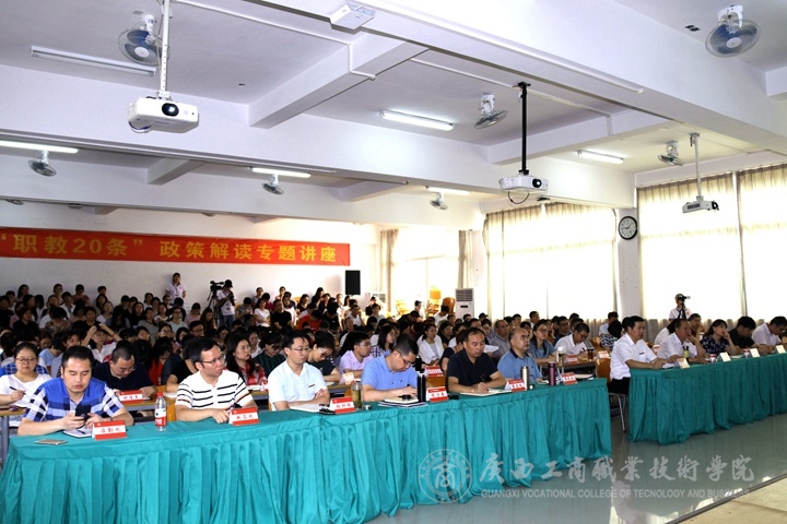 ? ? ? ? 為進一步貫徹落實《國家職業(yè)教育改革實施方案》精神,持續(xù)推進學(xué)院產(chǎn)教融合、校企合作、立德樹人工作,7月8日上午,我院于鵬飛校區(qū)教學(xué)樓報告廳邀請了教育部職業(yè)技術(shù)教育中心研究所評估中心副主任、全國職業(yè)教育集團化辦學(xué)工作專家組成員周鳳華教授作題為《< 國家職業(yè)教育改革實施方案>背景下職業(yè)教育產(chǎn)教融合校企合作的實踐路徑與思考》專題講座。學(xué)院黨委書記覃武云、院長李維、黨委副書記蒙啟成、副院長李仕欽、副院長陳寧春及全體職教工現(xiàn)場聆聽了講座。