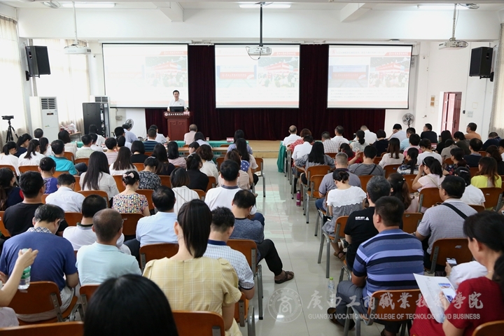 ??????? 2019年7月12日下午,我院于鵬飛校區(qū)報(bào)告廳召開(kāi)2018—2019學(xué)年第二學(xué)期期末總結(jié)大會(huì)。全體院領(lǐng)導(dǎo)及教職工參加了本次會(huì)議。會(huì)議由學(xué)院黨委書(shū)記覃武云主持,院長(zhǎng)李維在會(huì)上作本學(xué)期工作總結(jié)。