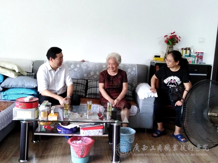 ?????? 在離退休老同志覃澤光的家里 ,我院黨委書(shū)記覃武云握著他的手,感謝他為學(xué)院發(fā)展做出的突出貢獻(xiàn),并囑咐覃澤光老同志的家人照顧好老人的日常起居。在文九齡老同志家,李維院長(zhǎng)希望他能保重身體,繼續(xù)為學(xué)院發(fā)展建言獻(xiàn)策。