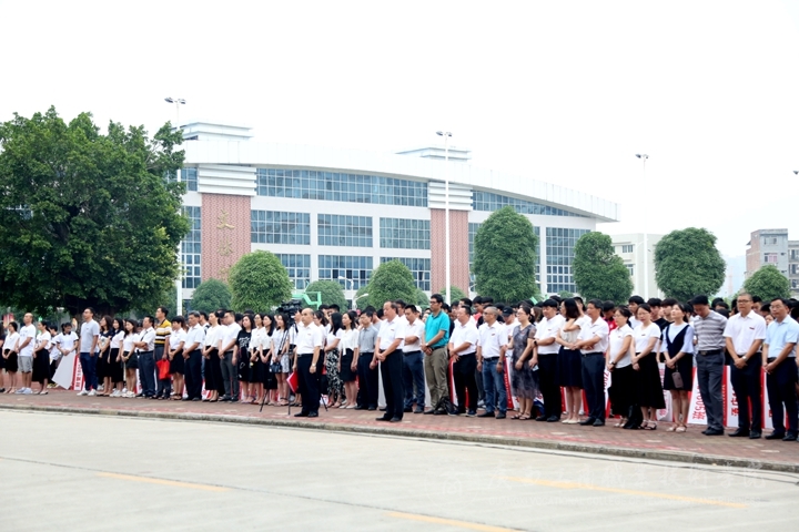 ??????? 8月26日清晨,我院新學(xué)期的第一次升旗儀式在鵬飛校區(qū)田徑運(yùn)動(dòng)場(chǎng)隆重舉行,出席人員有學(xué)院領(lǐng)導(dǎo)、各部門領(lǐng)導(dǎo)、各系部門老師和2018級(jí)全體學(xué)生。本次升旗儀式由黨委學(xué)工部副部長(zhǎng)林雯主持。
