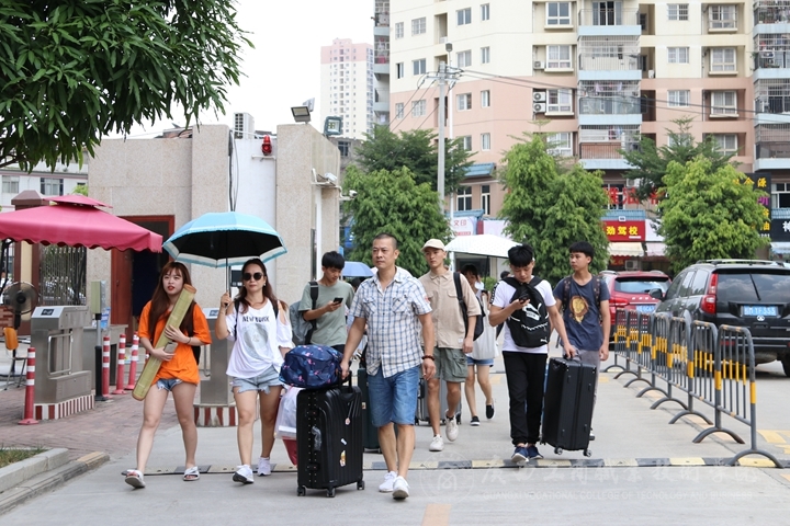 ??????? 一大早,校園的各個角落都熱鬧起來了,教學樓架空層場地周圍的各系迎新站點已經(jīng)出現(xiàn)了一批又一批的學生及家長。他們從四面八方蜂擁而至,大多新生都是由父母陪同著。家長們遠道而來,不顧路途的疲勞,扛著大大小小行李,緊緊地跟在孩子的身后。