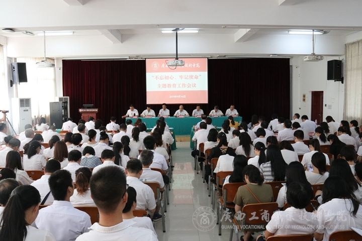 ? ? ? ? 9月16日上午,中共廣西工商職業(yè)技術學院委員會在鵬飛校區(qū)報告廳召開“不忘初心、牢記使命”主題教育工作會議。會議貫徹落實黨中央、自治區(qū)黨委關于主題教育的部署要求,對全院主題教育工作進行全面動員部署。自治區(qū)黨委“不忘初心、牢記使命”主題教育第七巡回指導組組長周懷營、副組長趙煥春、副組長俞健出席會議,俞健在會上發(fā)表講話,指導組其他同志到會指導。學院黨委書記覃武云在會上作動員講話,學院黨委副書記、院長李維主持會議。